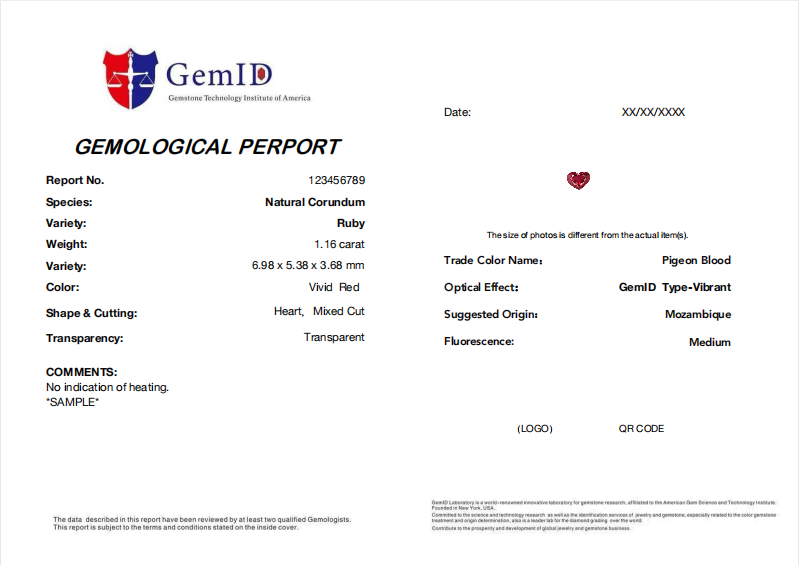 The GemID Gemstone Report is divided into Colored Stone Report and Pearl Report, the Colored Stone Report is applicable to colored stones, natural jade, and organic gemstones (such as amber, gem-grade